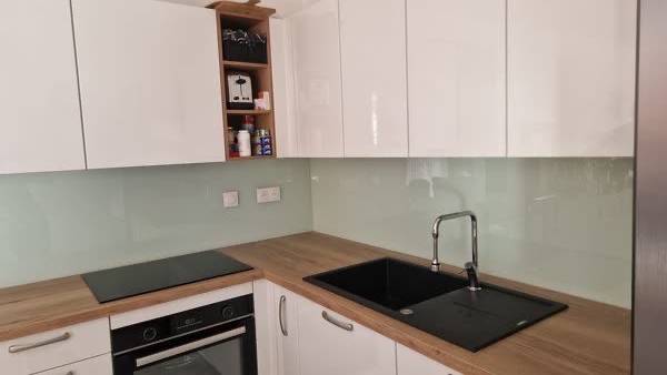 Le projet consistait en la fourniture et la pose de deux panneaux de verre vert d’eau brillant 6 mm, soigneusement découpés aux dimensions précises de 1696 x 508mm et 2080 x 508mm. Pour garantir une finition impeccable, nous avons utilisé des joints plats polis ainsi que des accessoires de pose adaptés, avec une finition silicone translucide pour un rendu esthétique et durable.